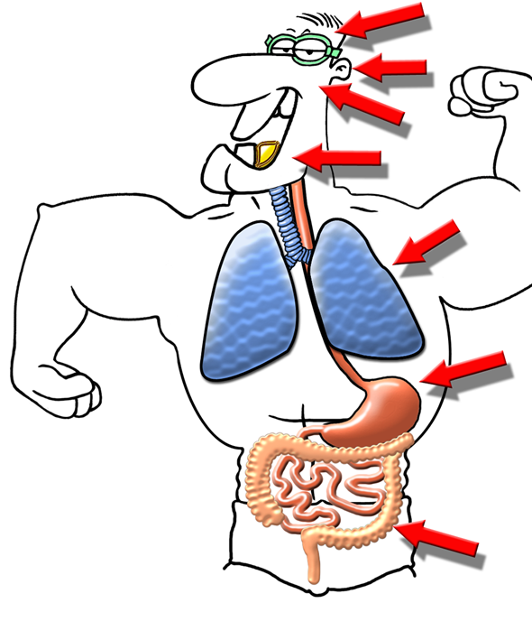 חללי האוויר בגוף המושפעים מהשתנות הלחץ בעת צלילה הם: הריאות, חלל הפה והאף (כולל הגרון), האוזן התיכונה והסינוסים. חללי אוויר נוספים עלולים להיווצר בנסיבות מסוימות בשיניים (סתימות לא טובות) ובמעיים.