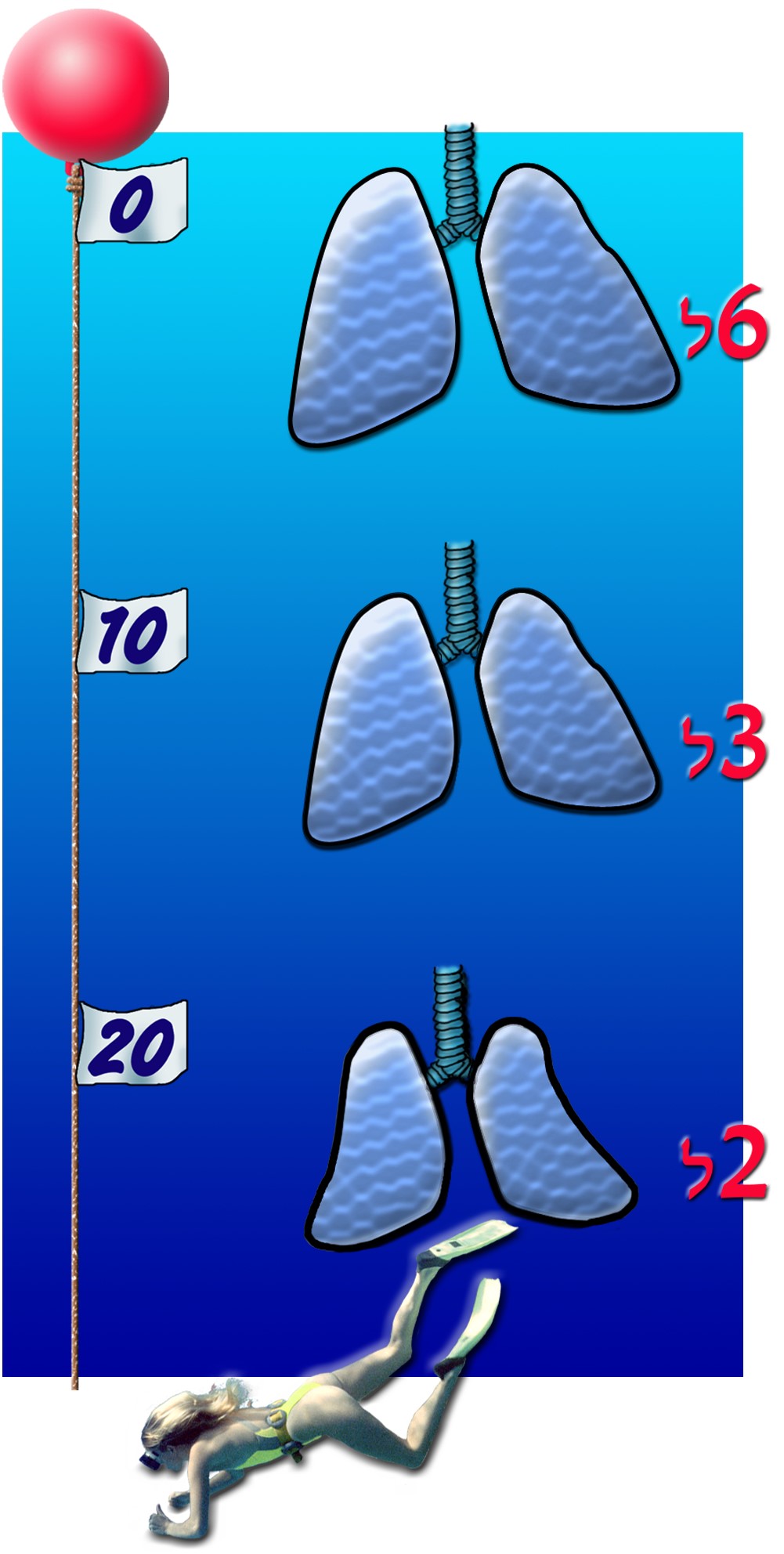 בצלילה חופשית, הצולל ממלא את ריאותיו באוויר שהוא שואף מעל פני המים ובמהלך השהייה שלו מתחת לפני המים, הוא עוצר את נשימתו. מובן שמשך הצלילה שלו מוגבל ואינו עובר את משך הזמן בו מסוגל הצולל לעצור את נשימתו. בזמן הצלילה, מושפעות ריאותיו של הצולל המבצע צלילה חופשית מעליית לחץ הסביבה. במהלך ההעמקה, משתווה לחץ האוויר שבריאותיו ללחץ הסביבה והחזה שלו מתכווץ. ככל שהצולל מעמיק, אם כן, נדחסות ריאותיו ולחץ האוויר שבתוכן גדל.