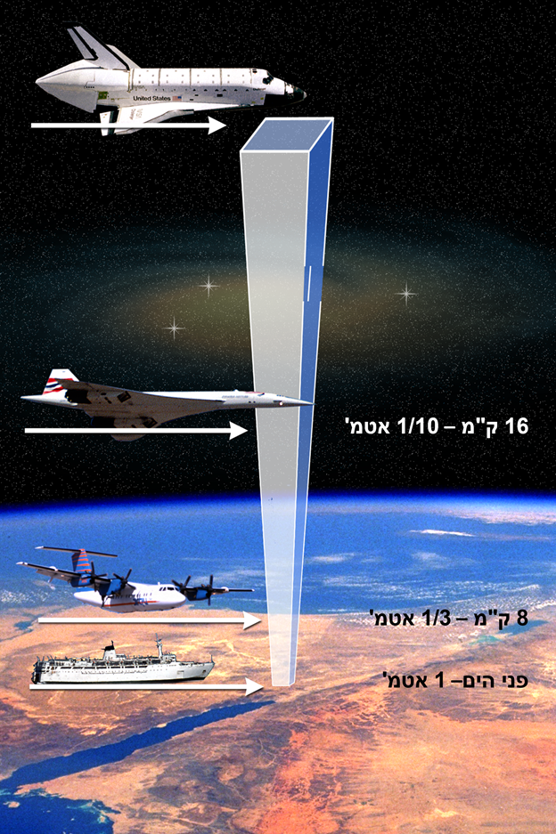 האוויר, כאמור, הוא גז. בהיותו גז, הוא ניתן לדחיסה ע׳׳י הפעלת כוח חיצוני. דחיסת הגז תגדיל את צפיפותו. במקום הנמצא מעל או מתחת לגובה פני הים, יהיה הלחץ האטמוספרי גבוה או נמוך מ-1 אטמוספירה, בהתאמה. על פני אגם הנמצא גבוה מעל פני-הים, יהיה הלחץ האטמוספרי נמוך יותר, משום שמעליו נמצאת כמות קטנה יותר של אוויר. בגובה 5 ק׳׳מ, למשל, יהיה הלחץ האטמוספרי רק 1/2 אטמוספרה. על פני ים המלח, הנמצא מאות מטרים מתחת לפני הים, יהיה הלחץ האטמוספרי גבוה יותר, בשל משקל שכבות האוויר שמעליו.