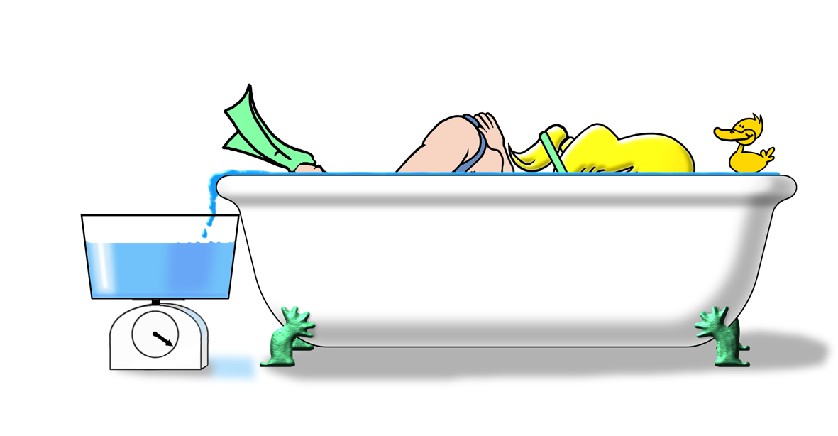 צולל שמשקלו 80 ק׳׳ג ונפח גופו 78 ליטרים (כלומר, גופו ידחה 78 ליטרים של מים שמשקלם 78 ק׳׳ג), ישקול במים רק 2 ק׳׳ג (78 - 80 = 2). אם כך, בעת צלילה במים אנו חסרי משקל כמעט לחלוטין.